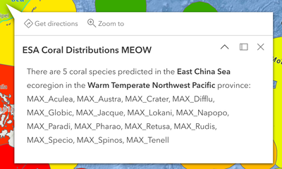 There are {Sum} corals species predicted or confirmed in the {ECOREGION} ecoregion in the {PROVINCE} province: {expression/expr0}