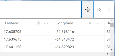 In Map Viewer Classic, open the hamburger menu on the right side of the table and select "Show/Hide Columns"