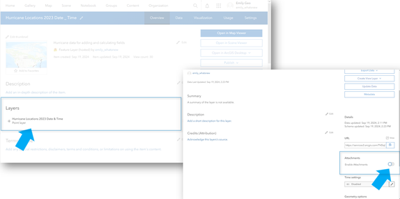 I developed a map on Arc GIS Online for collecting some GPS data via field maps. I was asked to add the capacity to take pictures of feature when GPSing. There is information on line about adding attachments to a feature class but none of them are how to do it on arc GIS online. Is there a way to enable this on Arc GIS Online? I want to avoid republishing if at all posable.