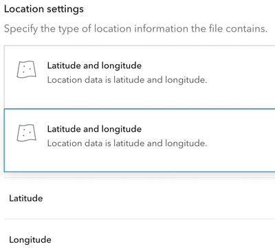 I am trying to create a map that visualizes the attendees of a meeting based on their zipcodes, but for some reason the CSV file I am using that has the zip code and attendee data won't load into ArcGIS online properly. Whenever I try to add it as a new layer from the CSV file, it won't let me change the location settings to show that the file contains zip code information. It only lets me organize it by latitude and longitude, which is not data I have in the CSV file. How can I get it so that the location settings allows me to group my data by zip code instead of only by latitude and longitude and create a new layer in my map?