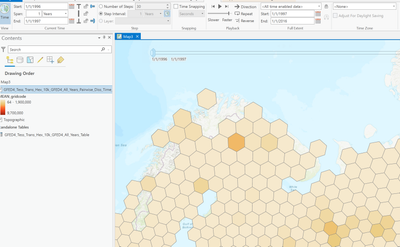I am trying to upload a time-enabled polygon dataset to AGOL. I have a layer of hexagons where each cell contains a value per year, allowing me to show distribution over time. The years are contained in a date field that displays fine inside Pro: