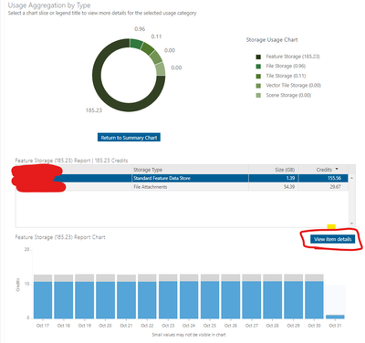 Rule of thumb - Feature Storage (i.e Feature layer) uses the most credit.