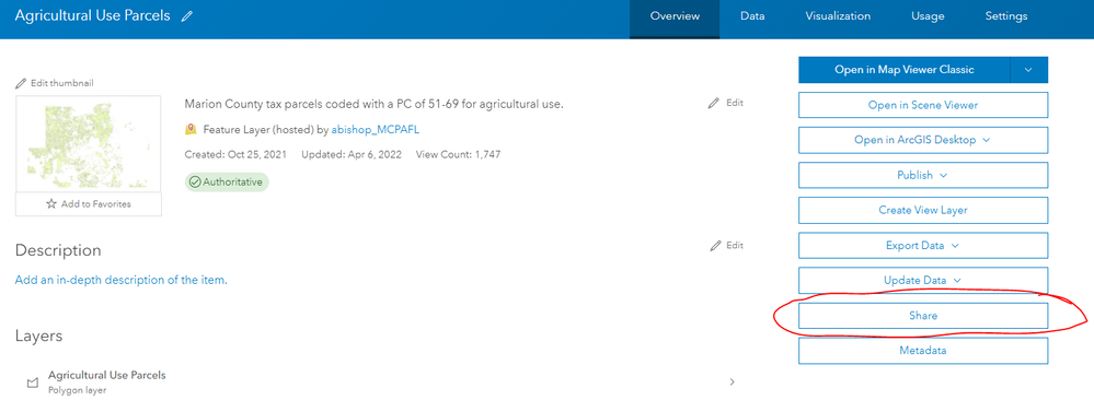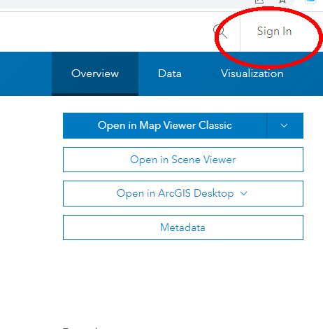 2. Once the item details page appears, if you have shared the data as downloadable, you can then choose the download data button.
