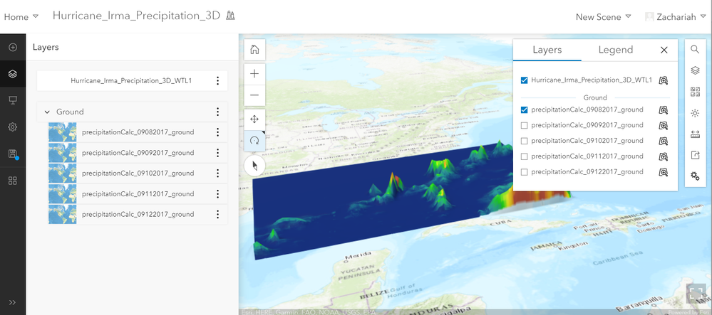 When I shared it as a web scene to ArcGIS Online, only 1 of my raster layers shows up while all of my ground layers show up.
