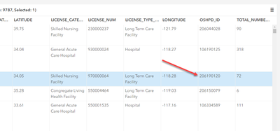 When you open the Data tab, OSHPD Number has thousands separators in the values. When you click on a point in the Visualization tab, there are no thousands separators in the OSHPD Number on the pop-up as it was configured to not display them.