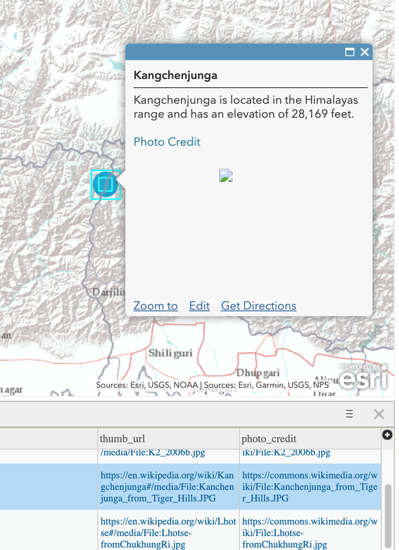 Hi, I'm trying to complete an assignment, "Climbing high Custom pop-ups", from ArcGIS Online "Teach with GIS" website.