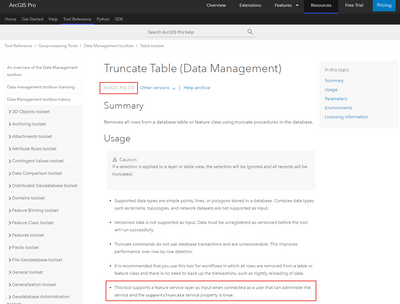 Hopefully this hasnt been asked before, I am trying to use the truncate table tool from within arcgis pro for a feature layer in arcgis pro, the plan being to later append the data.
