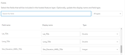 Does the Lat and Long fieldtype reflect as Double (while adding it to ArcGIS Online)?