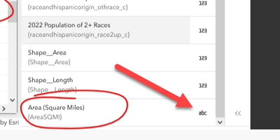 Hi all, I created a new field on my layer (area in sqmi) in hopes of using this to normalize population data and create a density map via the 'Transparency by attribute' route, however, no matter what I do this newly created & calculated field does not show up as an option. It shows up in the attribute table and the fields list, but I am unable to select it as a 'Divided by' field.