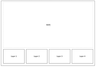 Something like below... where there would be a map at the top and when the user clicks the cards at the bottom would update with attributes from specific layers....