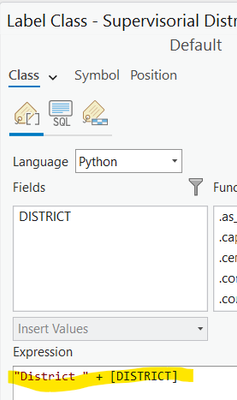 Label shows up as: "District" CONCAT 1