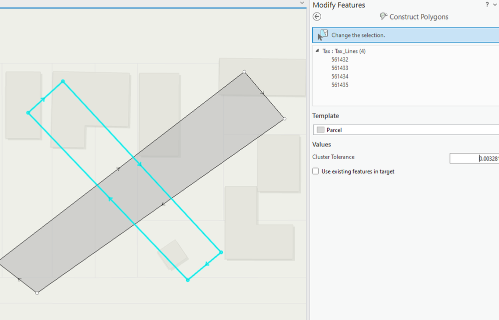 If selecting the lines consumes too much time, you can also consider creating seeds for each parcel part, then toggle off the Active Record, and use Merge into Existing Feature.