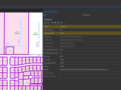 When I assigned these two parcels to an existing record that was not completed (assigned both parcels to record) I noticed the original records changed the values in Shape.STArea() and Shape.STLength() to null.