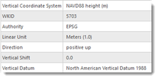 Resulting Spatial Reference settings at the LRS dataset including Projected Coordinate System (PCS), Geographic Coordinate System (GCS) and Vertical Coordinate System (VCS):