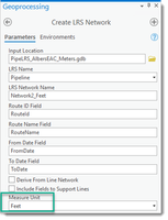 Following example shows creating a second network and defining the units to Feet using the LRS that is using USA Contiguous Albers Equal Area Conic Meters.