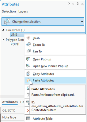 3. Finally, you may want to consider using the Copy Attributes and Paste Attributes commands in the Attributes pane (instead of Transfer Attributes) for greater control of which features you want to transfer attributes to/from, as you can select specific features in the map and see them within the Attributes pane before pasting attributes.