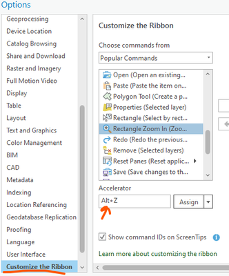 It is currently possible to assign an accelerator for the Rectangle Zoom tool. See https://pro.arcgis.com/en/pro-app/latest/get-started/customize-the-ribbon.htm#ESRI_SECTION1_0B9AD340...