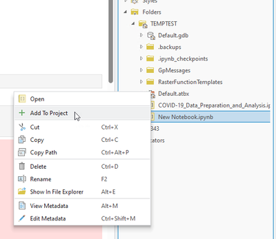 NOTE: Using Add to Project on a notebook item in the Catalog pane Folders node still behaves as it did before (adds the notebook to the Notebook node in the Catalog pane without opening it)