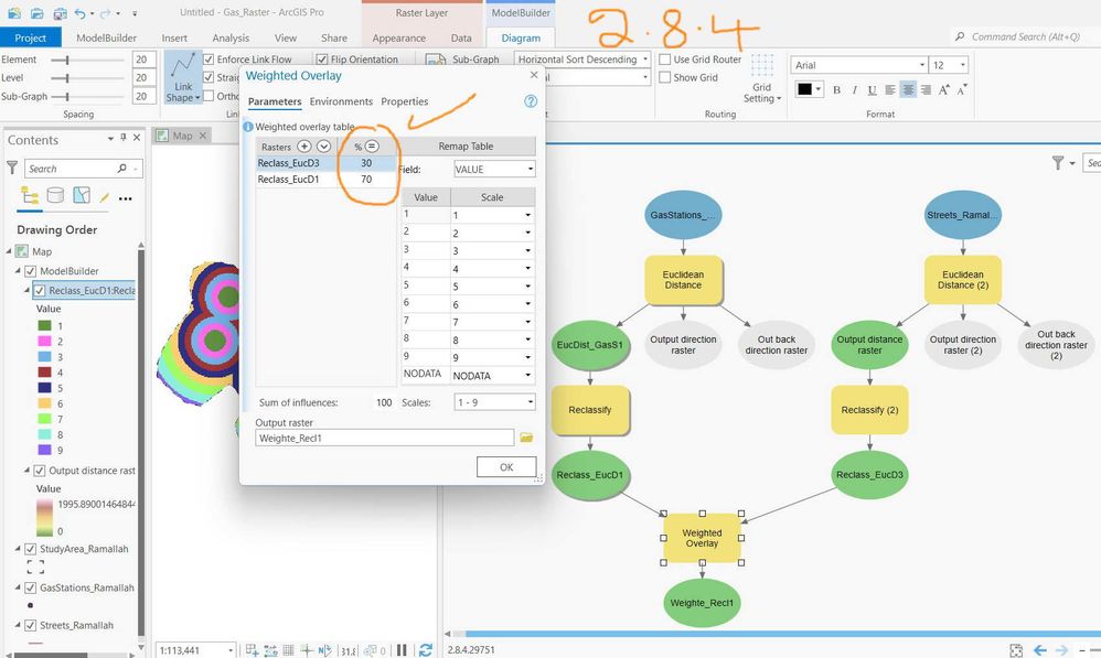 Then go and change the influence percent within the “weighted overlay” tool