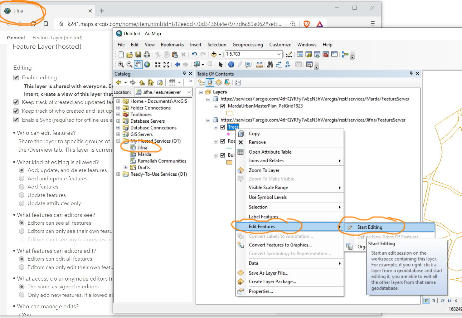 I observed that the “edit feature” tool appears not to be available on the right click of a service published on the ArcGIS Online.