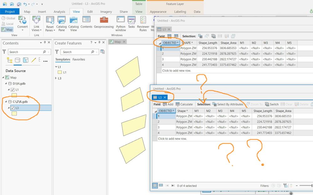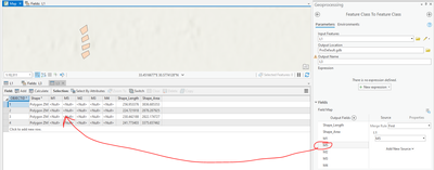 Unfortunately I don't think that your screenshots get us any closer to figuring out how to reproduce what you and Jamal are seeing. I saw that you were using a polygonZ feature class and that Jamal was as well in his screenshots. So I tried to reproduce (again!) but this time with a polygonZ feature class. You can see that my original feature class has fields m1, m2 and m3 - I'm trying to replicate what I can from your screenshots.