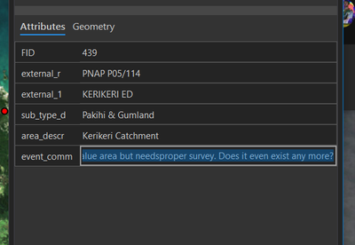 When long text is presented in the attributes pane it will be trimmed to the width of the pane (first image). To see the contents you have to click into the field (second image). It would better to have the text show up like the second image without clicking into it. A hover tooltip would also be acceptable.