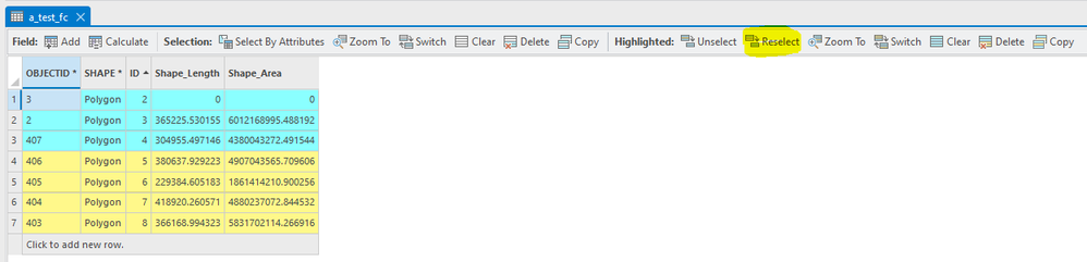 Attribute Table — Highlighted rows "Reselect" button wording