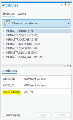 All the FCs have the same ASSET_STATUS field. But as far as I can tell, there isn't a way to select multiple FCs in the Attribute Pane and then update the field to ACTIVE for all the FCs using a single action.
