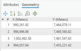 Likewise, the Attribute pane's Geometry tab shows 4 vertices.