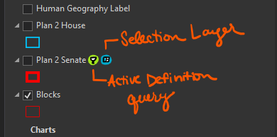 The comment about new users or even experts that may not realize a definition query is on should also be considered - they're not going to go filter the list to check on that. And again, the back and forth of it - eh. I agree, a little icon would be a helpful indicator for new users and daily drivers alike. A similar argument could be made for selection layers.
