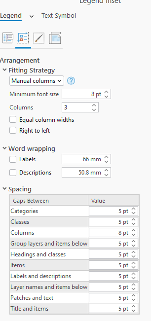 When in Manual Column mode please disconnect the Word Wrap length for Labels and the column spacing setting used in a legend. (Currently on Pro 3.5.1 but counts for earlier versions)
