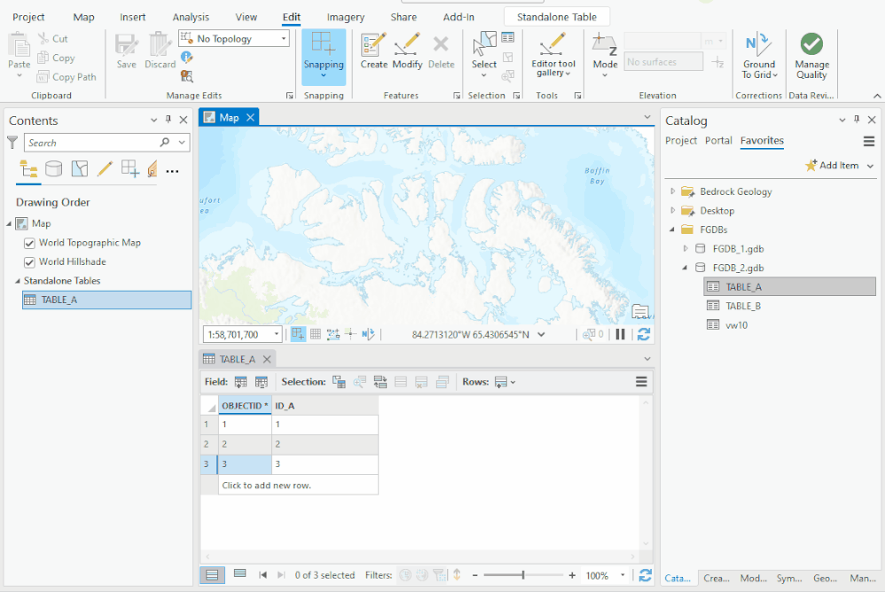 ArcGIS Pro 3.0.3 file geodatabase standalone table: