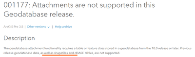 Please fix the message to say "Attachments are not supported in Shapefiles".