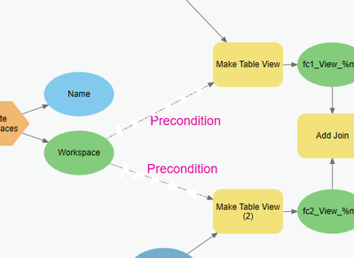 The symbol used to indicate a precondition link is almost identical to the standard link line. I show a simple example below.