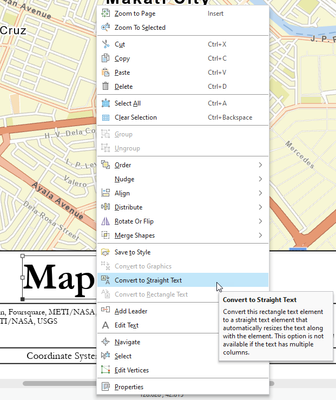 I've created quite a few text elements using the Insert | Text method because that is the method closer at hand when authoring maps and inserting all the other map surround elements. However, I've always been disappointed that these test elements did not support text wrapping. Now that I've become aware that the Rectangle Text tool supports this, I have the onerous task of creating new text elements and copying text into them. It would be much easier to just hit a checkbox and have text wrapping turned on.