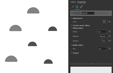 I have two layers: on the first, I have applied the symbol effects Buffer and Offset, in that order. On the second, the order is reversed.