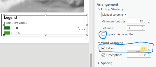 • Note that once Word Wrapping value is less than width of labels (0.7), words wrap.  But we are stuck with Equal Column Widths
