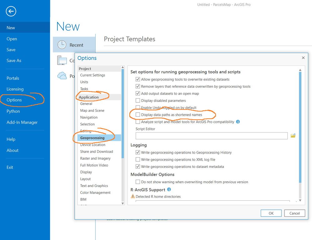 The geoprocessing setting in Pro makes the display path behavior work the same.
