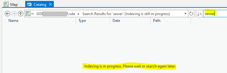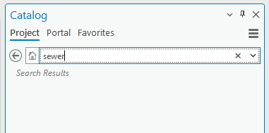 For example, search a specific enterprise geodatabase for the word "sewer".