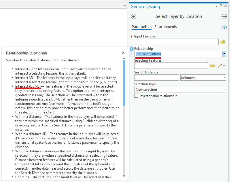 Select Layer By Location (Data Management) - Intersect (DBMS)