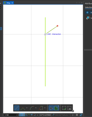 Here I'm snapping to the intersection of the green line and my grid line (gray):