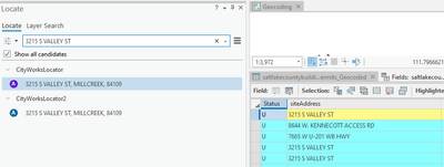 Notice  the address 3215 S Valley St went unmatched yet I can use the find tool with the locator I used (CityWorks2) and it hits on an address point...I have the locators set to Match With No Zones = YES....