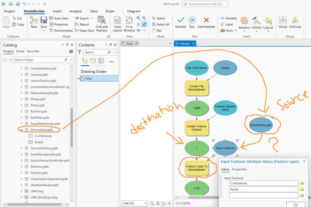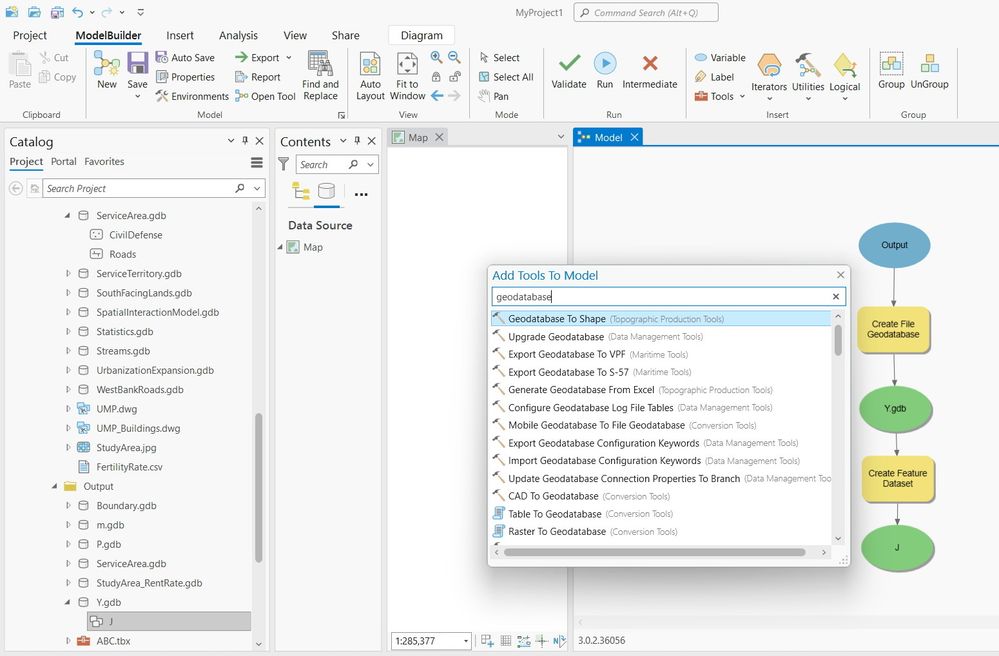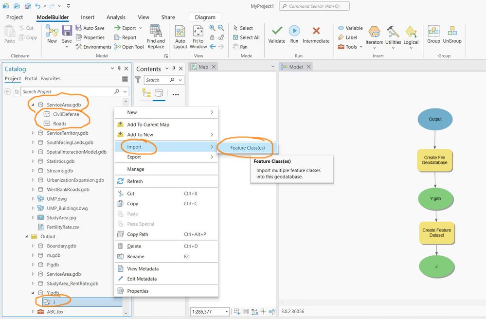 ArcGIS 3.0.2: What is the equivalent tool to “import features” from geodatabase to feature dataset in the model builder?