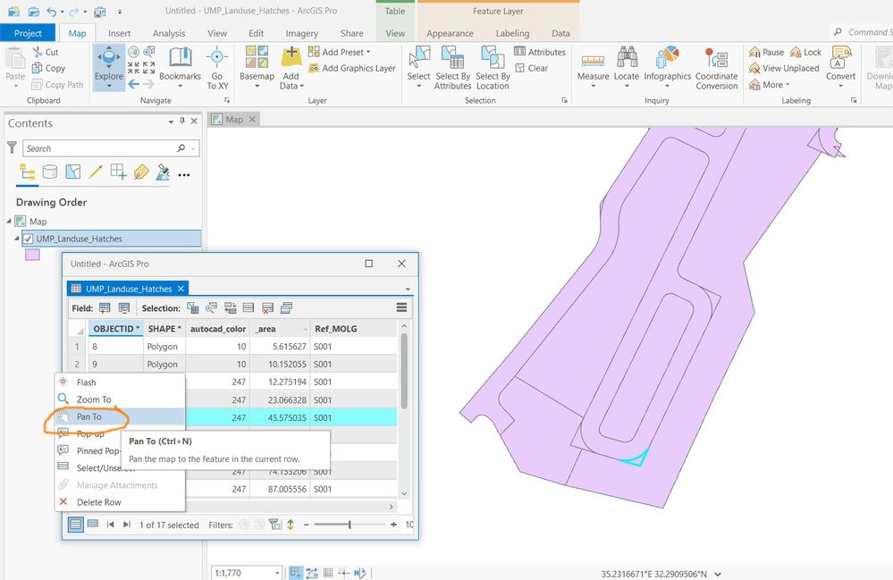My aim here is to go to selected feature from the table (having a look on polygons that have small area, for example). Right, the “pan to” is there but when double clicking a record (which is easier than right clicking and then choosing the option), it behaves as “zoom to”.