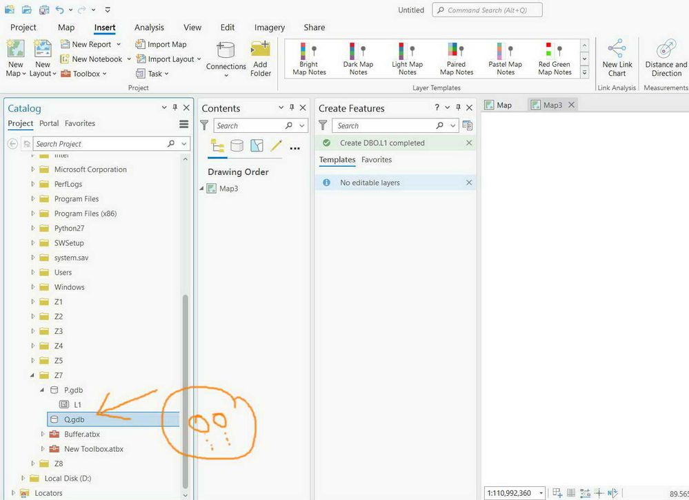 I don't see anywhere that creates the C:\\Z7\\Q.gdb\\L1 feature class?