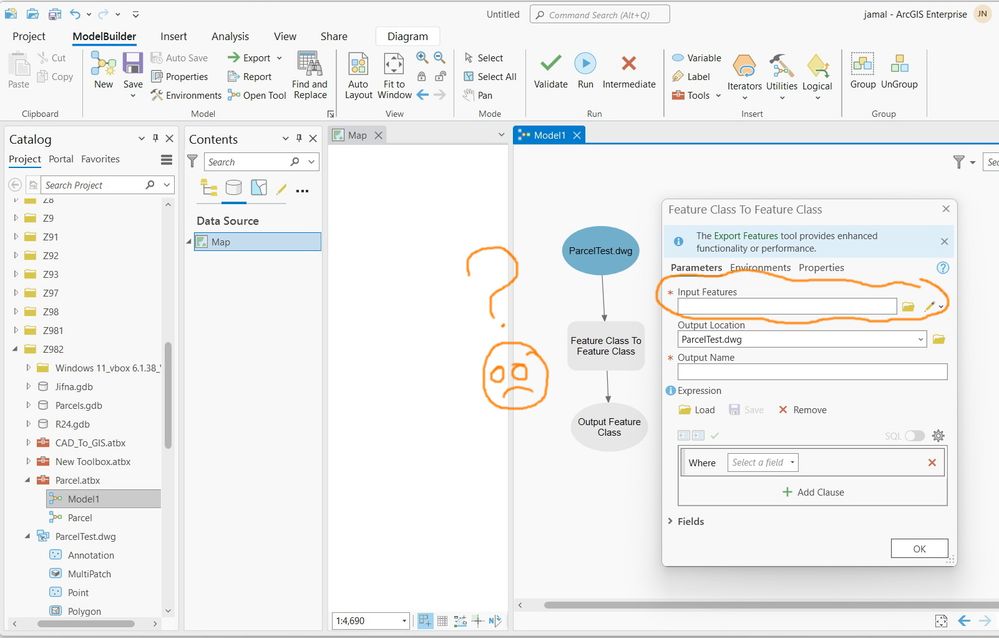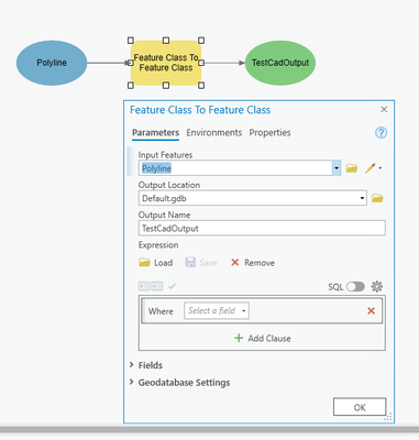 For example, in the screenshot below, I couldn’t figure out which tool I need to use in order ot extract the polyline feature class from the CAD file in the model builder