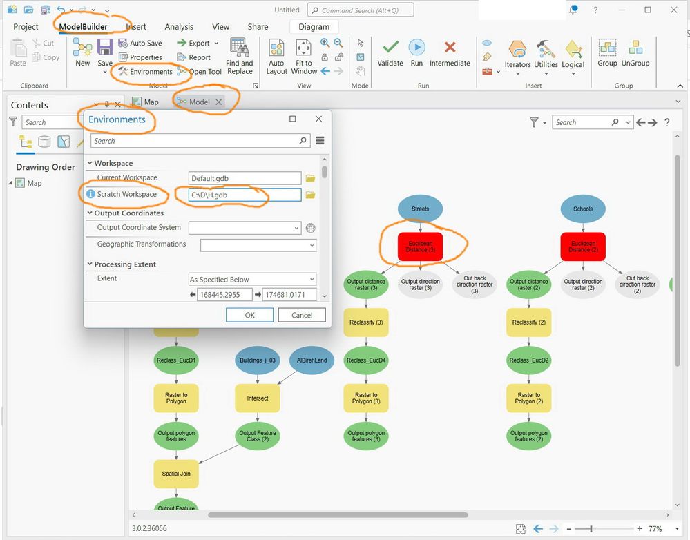 Despite the fact that the environment scratch workspace is set properly, the tools in model builder fails and end up with 010161 error as per the screenshots below