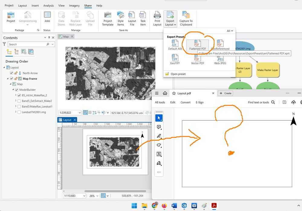In the screenshot below, the “Pop-up” tool returns no values for some visible rasters, even though these rasters are derived from the same source layer, as shown in the model.