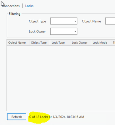 ArcGIS Pro- Locks Issue- Showing 0 of # for current locks and no found documentation