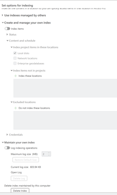 Every time I create a new project in ArcGIS Pro, it automatically generates an Index folder, which I don’t need. I’ve tried disabling it via Settings > Options > Indexing by unchecking "Enable indexing for project contents", but the folder still appears.